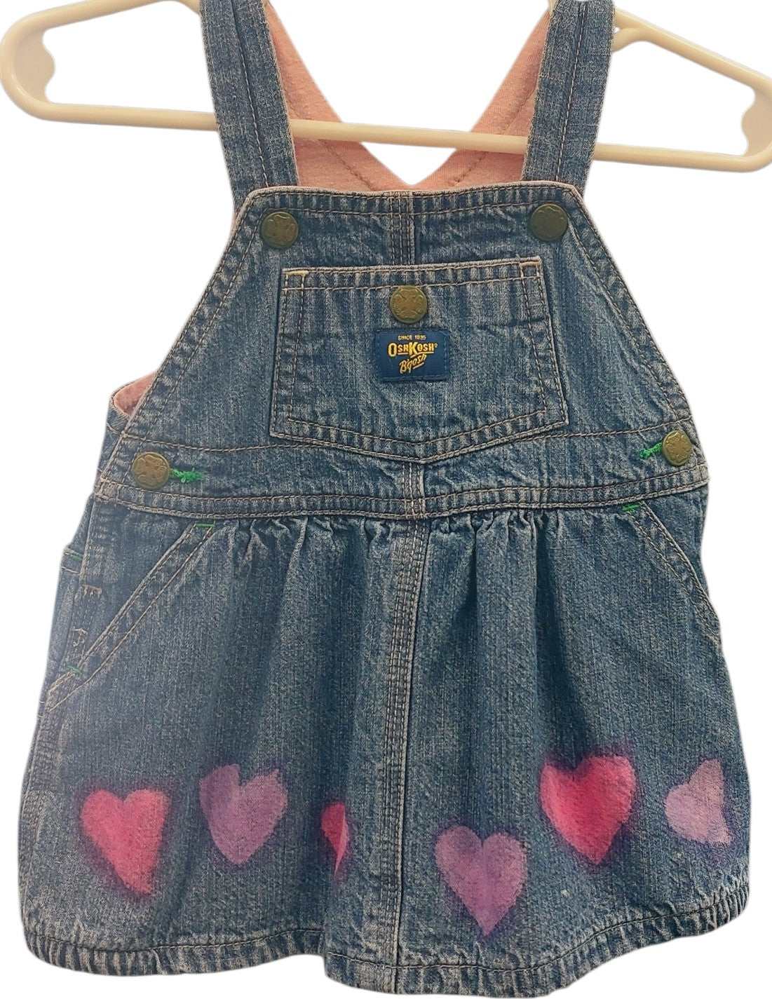 Cute denim dress by OshKosh with tie dyed hearts and pink lining